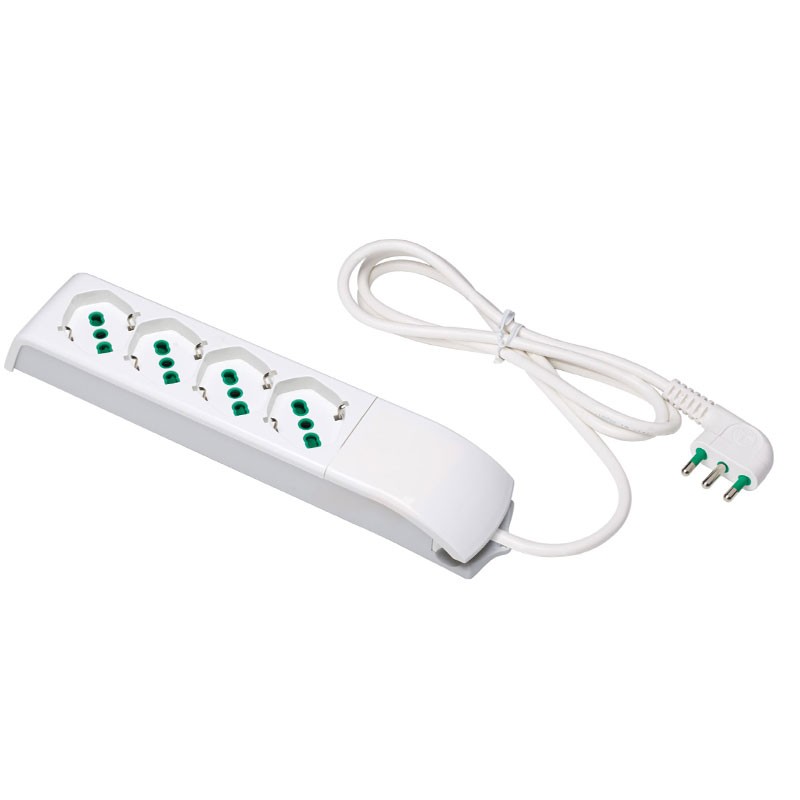 - Con 4 tomas de corriente italianas/alemanas 2P+E de 16 amperios