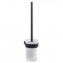 Portaescobilla de pared Gedy Pirenei de acero inoxidable y cromall, con recipiente de cristal esmerilado, color negro mate, penacho de cerdas, dimensiones 8,4x10,4x37cm.