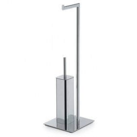 Portarrollos de papel higiénico con escobilla Gedy Rainbow negro, fabricado en acero inoxidable y resina termoplástica, dimensiones: Ancho 25,9 x base 16 x alto 58,8cm.