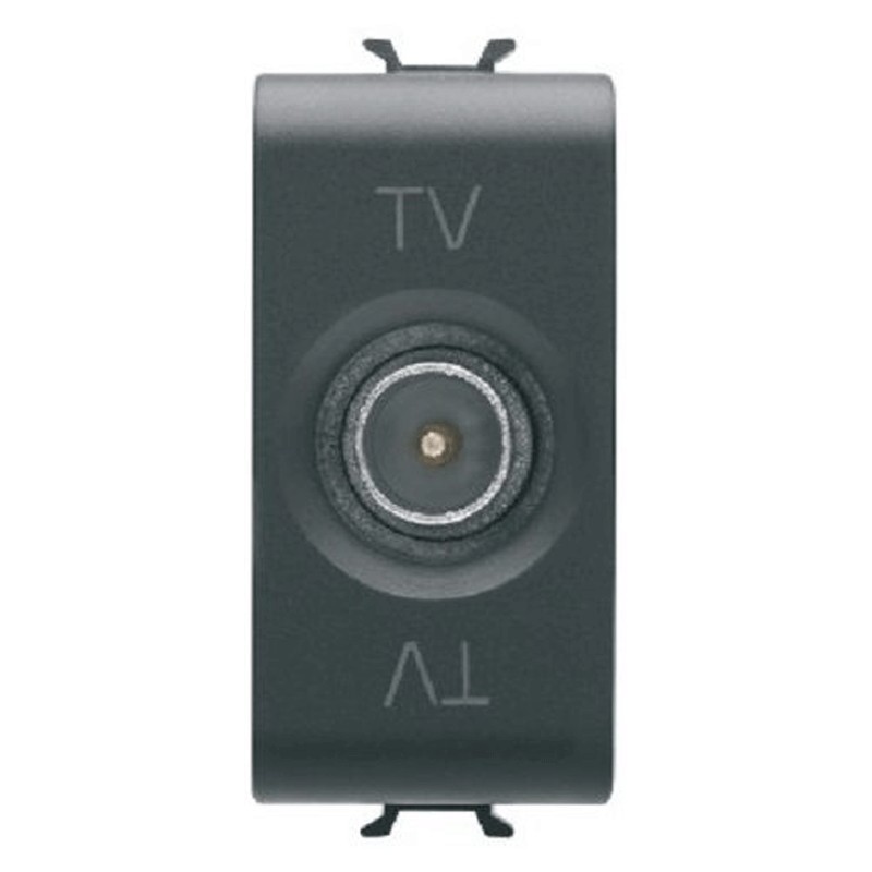 Toma coaxial de TV directa Gewiss Chorus, conector macho IEC de 9,5 mm, 1 módulo negro.