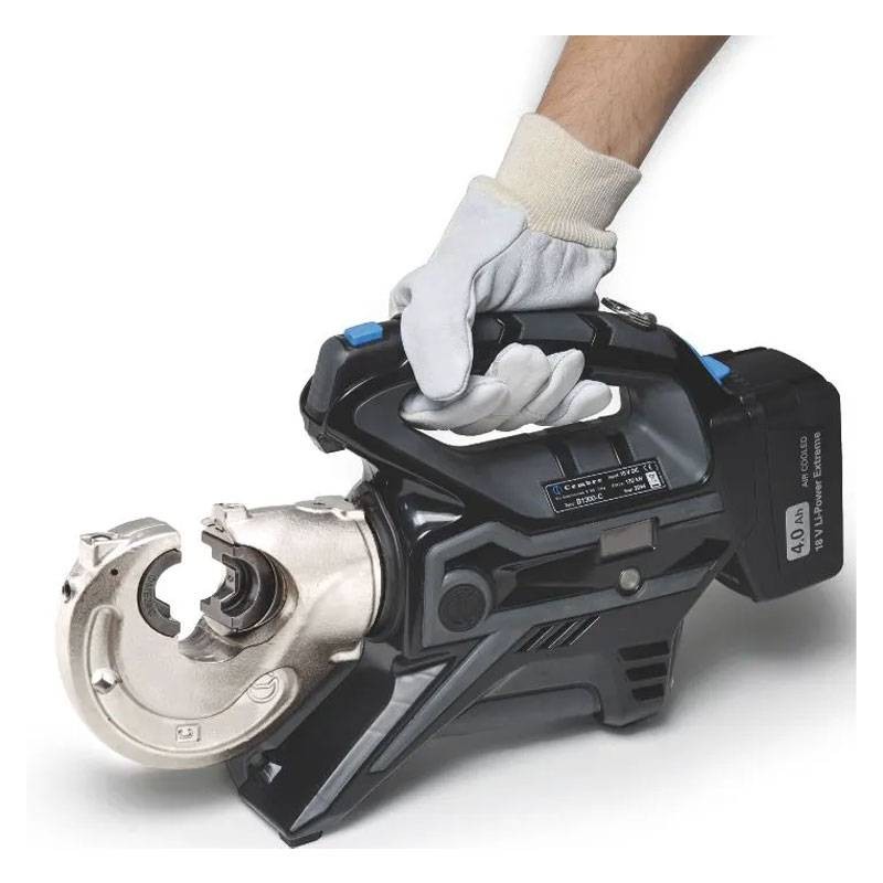 La crimpadora hidráulica Cembre B1300-C está diseñada para instalar conectores eléctricos de compresión en conductores de hasta 400 mm², garantizando un crimpado potente, preciso y seguro. Gracias a su cabezal en 'C' abierta, puede girar 180°, permitiendo adaptarse fácilmente a diferentes modos de uso y asegurando un alto nivel de versatilidad durante las operaciones.
