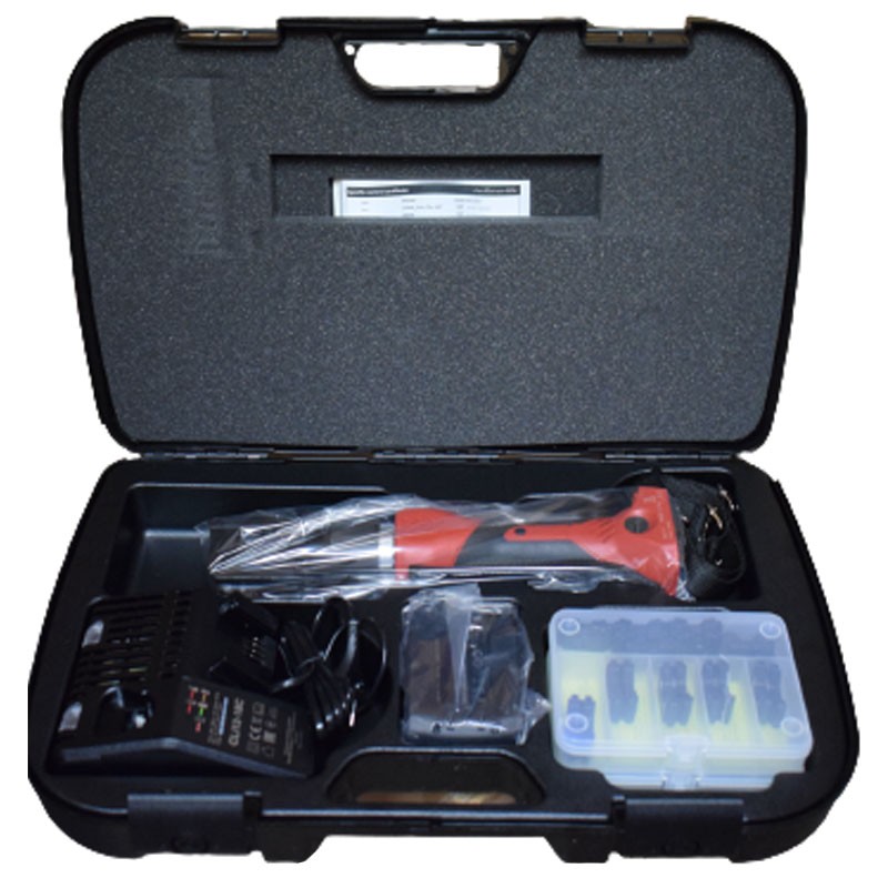 - Potente batería de iones de litio de 18V-1,5Ah (aprox. 200 engarces / CU 150 mm²)