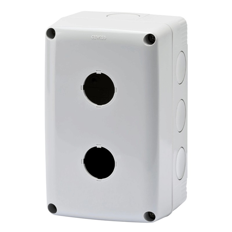 Contenedor de pared vacío Gewiss para botones, mandos y señalizadores, 2 plazas (agujeros), color gris.