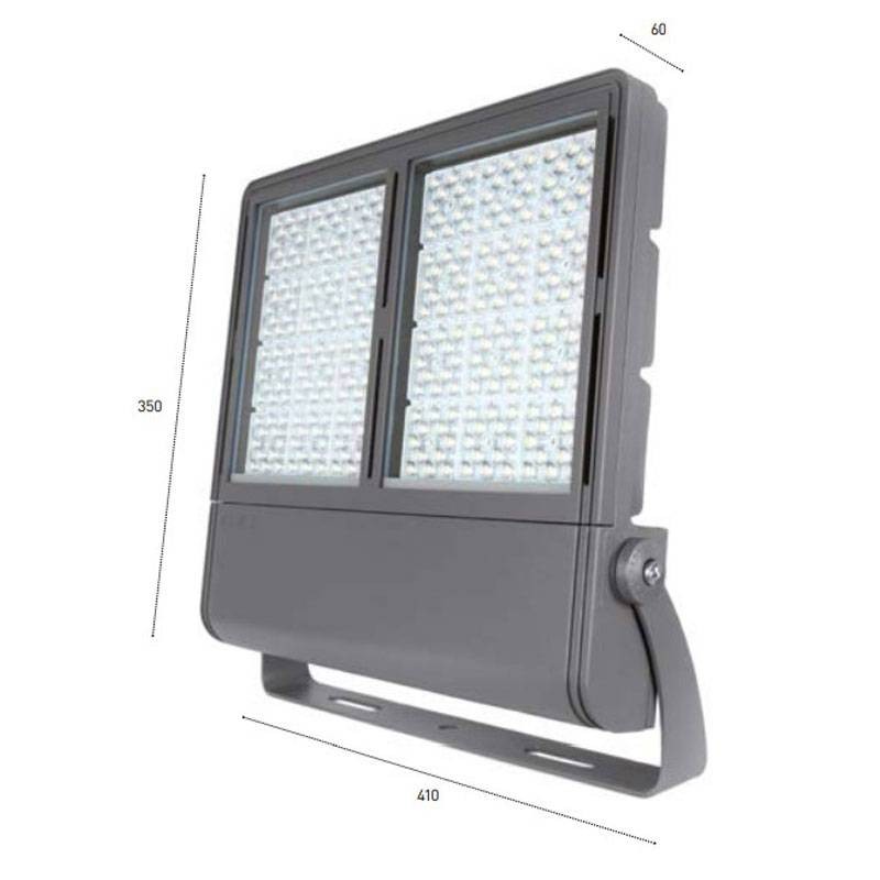 Proyector de exterior de alta eficiencia con sistema óptico multichip para mejorar la distribución de la luz y garantizar una alta fiabilidad, cuerpo con resistencia aerodinámica mejorada, pasivado y pintado con pintura epoxi de alta resistencia, herrajes de acero inoxidable y sistema goniométrico para un ajuste preciso del haz de luz. Conforme con las levas de alumbrado público.