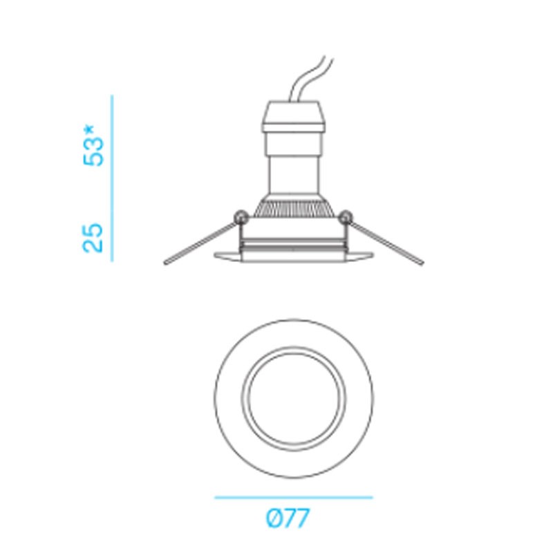 Instalación empotrada en el falso techo. Acabado de metal. Lámpara no incluida. Ataque GU5,3.