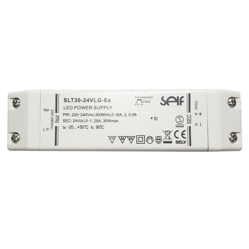 Fuente de alimentación LED Tecnel 30W 24V IP20 SLT30-24VLG-E