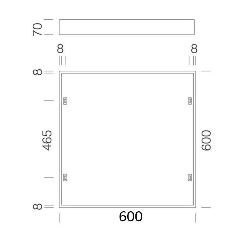 Marco para paneles Led Disano para la instalación en techo (plafón) de paneles de 60x60 cm, en particular de la serie Rodi 832/830. Es la solución perfecta para salas donde no se pueden instalar paneles empotrados, ofreciendo una instalación estable, elegante y profesional. El marco permite una instalación limpia incluso en techos sin falso techo, por lo que es ideal para oficinas, tiendas, escuelas y espacios comerciales, con las siguientes características: