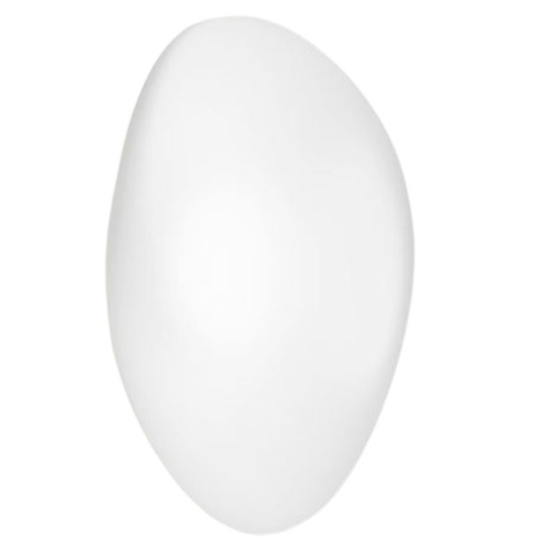 El cuerpo del aplique es de cristal blanco satinado soplado a mano, que filtra delicadamente la luz, creando un efecto visual uniforme y agradable. La estructura está acabada en blanco brillante para un contraste elegante y moderno. El diseño combina fácilmente con mobiliario contemporáneo o clásico, manteniendo una presencia discreta pero refinada.