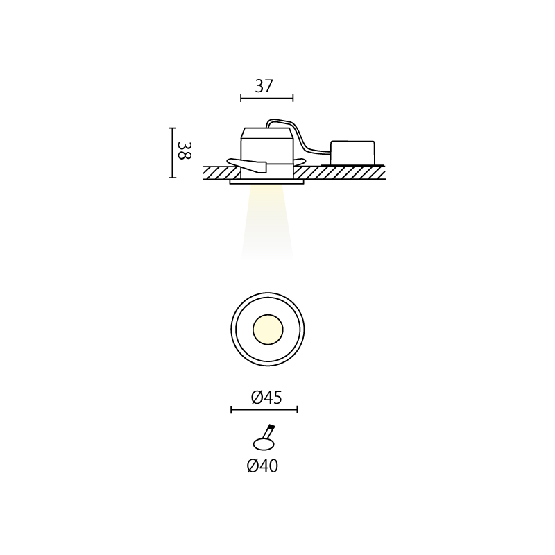 Su diseño redondo y compacto lo hace perfecto para cualquier estilo de interiorismo. La instalación empotrada permite una integración armoniosa en el techo, garantizando un aspecto elegante y minimalista.