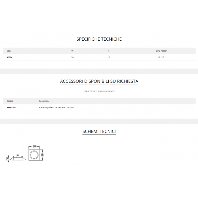 Empotrado giratorio para instalación en falso techo. Estructura en aluminio. Lámpara no incluida. GU10