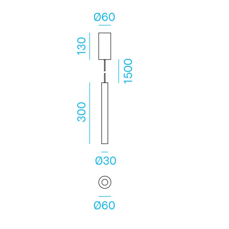 Luminaria LED tubular para instalación colgante Nobile serie DL030, con las siguientes características: