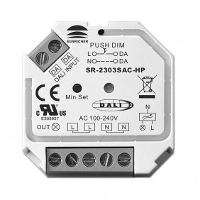 Brevemente, en la sensible a la posición indicada por un pequeño LED se consigue el encendido y apagado de la carga. Mantener el contacto por un tiempo más largo, se obtiene el ajuste de la luminosidad de la carga. El regulador tiene Memoria y conserva el poder en el último nivel de brillo de la guarda.