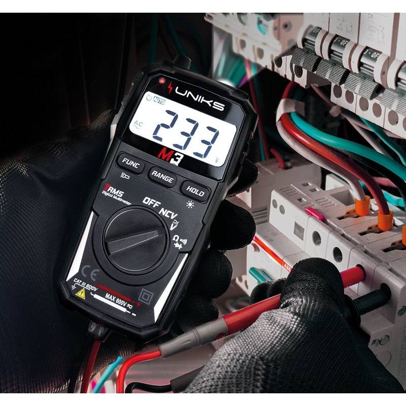 El Multímetro Uniks M3 es perfecto para profesionales y técnicos que trabajan en los sectores civil e industrial. Gracias a su certificación CAT III 600V, ofrece una seguridad y unas prestaciones óptimas, lo que lo hace adecuado para cualquier tipo de operación, ya sea en contextos domésticos o más complejos.