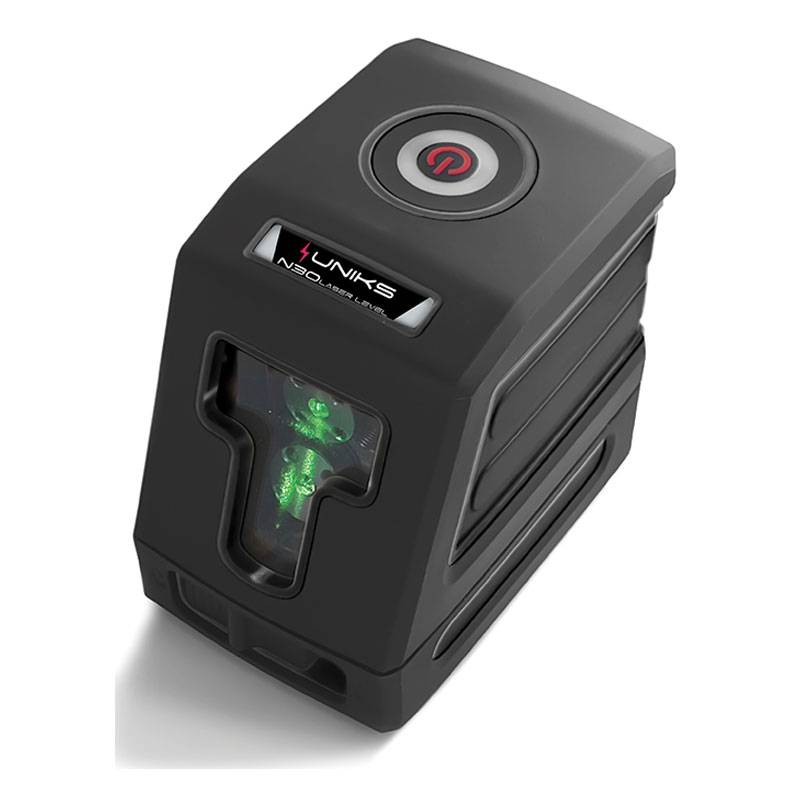 El N30 está equipado con dos LÁSERES que también se pueden utilizar simultáneamente en modo LÍNEA CRUZADA. Esta función de láser híbrido es de gran ayuda cuando se instalan lámparas de araña y ventiladores de techo o se instalan armarios y enchufes. El láser de línea cruzada está equipado con el sistema de inclinación inteligente, puede AUTONIVELARSE en una superficie inclinada dentro de 4° y si la superficie tiene más de 4° de inclinación, el láser parpadea para indicar que los parámetros son incorrectos.