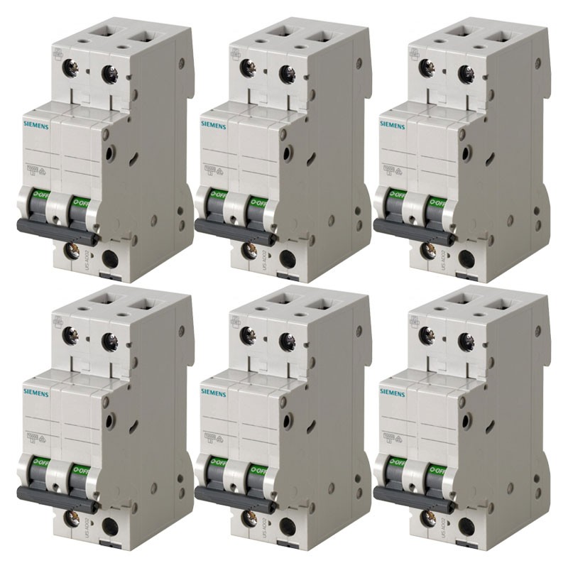 Juego de 6 piezas de disyuntores termomagnéticos Siemens, con las siguientes características:
