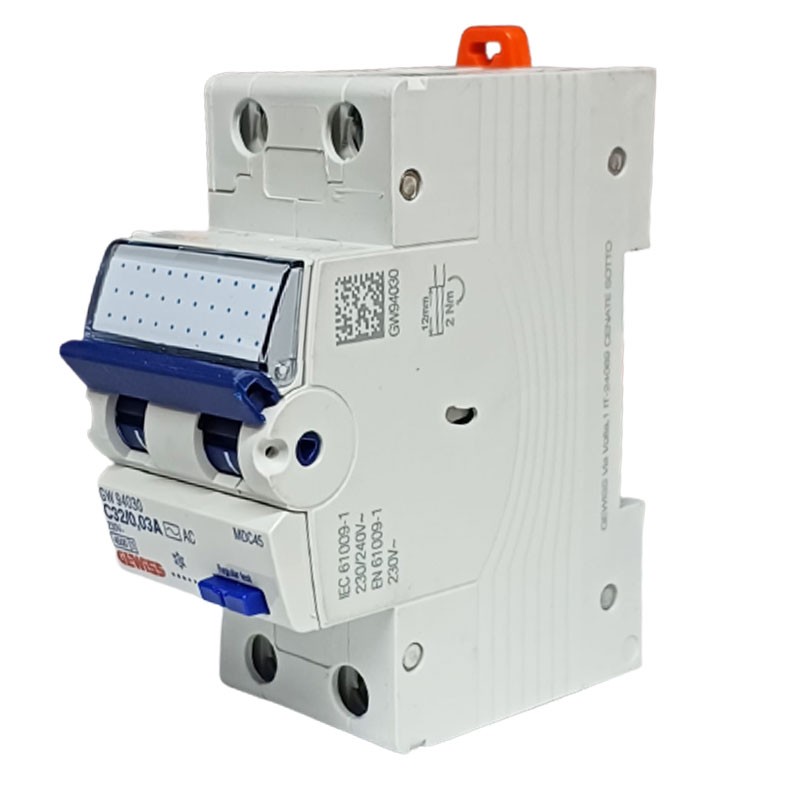 Interruptor automático diferencial de 2 módulos Gewiss 32A 2P 30MA AC 4,5KA con las siguientes características: