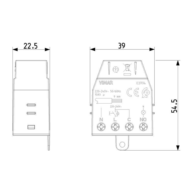 Módulo de relé de impulsos Vimar Quid 10AX 4 bornes 03994