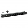 Barra de poder Bticino PDU de 19" con 6 enchufes e interruptor con protector contra sobretensiones en la alimentación de los equipos activos.