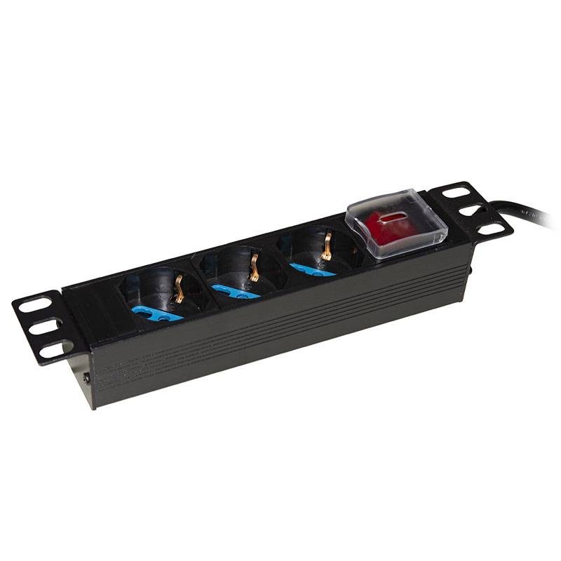 - Multienchufe para armarios rack de 10'' con 3 tomas schuko mixtas italianas/alemanas.