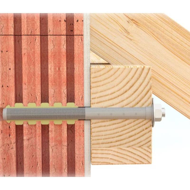 El anclaje de calceta Fischer está diseñado para fijaciones fiables en mampostería hueca y perforada utilizando resinas de inyección Fischer. El calcetín de malla de plástico garantiza una contención perfecta de la resina y permite una distribución óptima de la carga, incluso en materiales poco compactados.