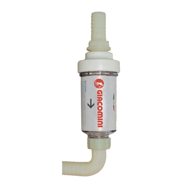Neutralizador de condensados ácido Giacomini para calderas de condensación para proteger las tuberías del sistema en el hogar y el medio ambiente. Conexión 3/4 "F x 3/4 "M con conector de manguera de Ø20.