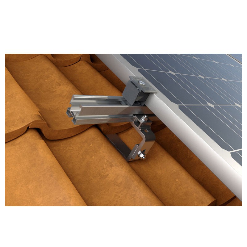 El gancho Fischer ofrece dos ajustes básicos: el ajuste vertical intermedio permite colocar el perfil a la distancia ideal de la parte superior de la teja, mientras que el ajuste en la parte superior del gancho permite alinear horizontalmente el perfil, facilitando la instalación incluso en superficies irregulares. Este ajuste múltiple es especialmente útil para adaptarse a diferentes configuraciones de tejado y conseguir una fijación segura y estable.
