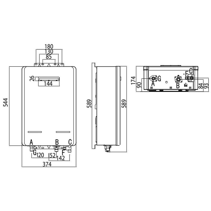 El calentador de agua exterior Avenir Plus LNX no requiere evacuación de gases de combustión gracias a su instalación externa (consulte la normativa local vigente).