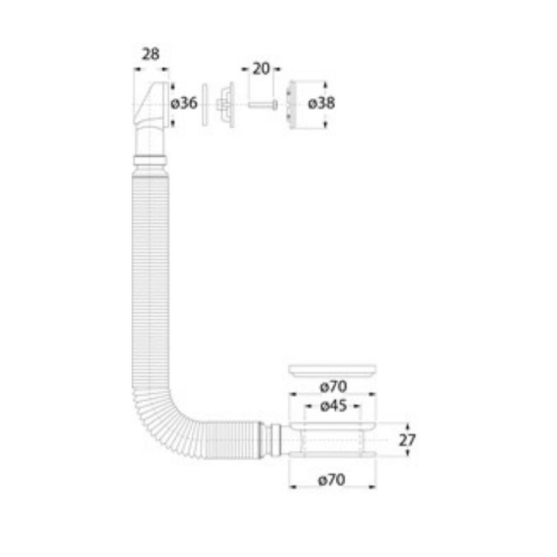 Desagüe de lavabo Bonomini con rebosadero soldado en los extremos, con rejilla redonda cromada de 38 mm de diámetro.