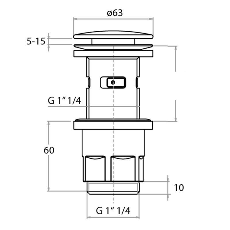 Desagüe de lavabo Cgs con tapón con mecanismo de presión Skip-up 2.0 y adaptador de acoplamiento rápido para convertirlo en una versión siempre abierta con las siguientes características: