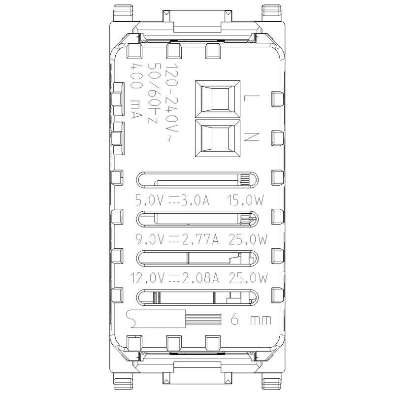 El alimentador USB Vimar Plana 14292.C.25 con puerto USB-C Power Delivery 25W es la solución ideal para cargar rápidamente smartphones, tabletas, notebooks compactos y otros dispositivos electrónicos.