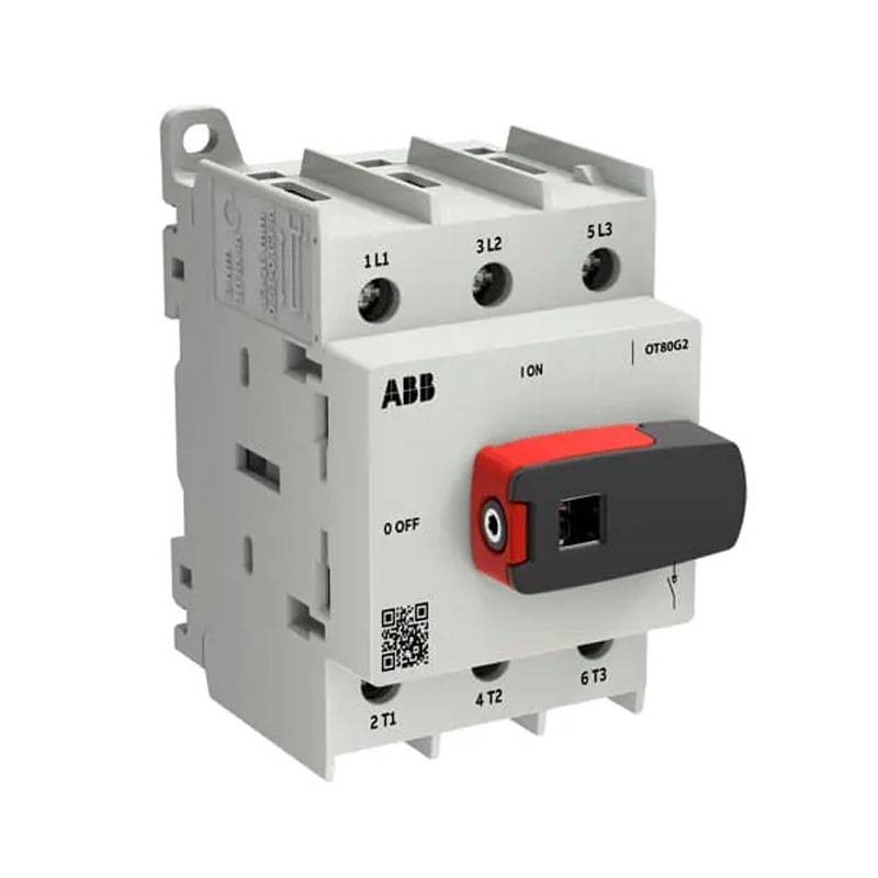 El seccionador ABB OT80G2-3BS 80A 3 polos (OT Plus, marco G2) es ideal para cuadros BT: accionamiento frontal, montaje en base o riel DIN y manija de pomo bloqueable para un seccionamiento seguro y práctico.