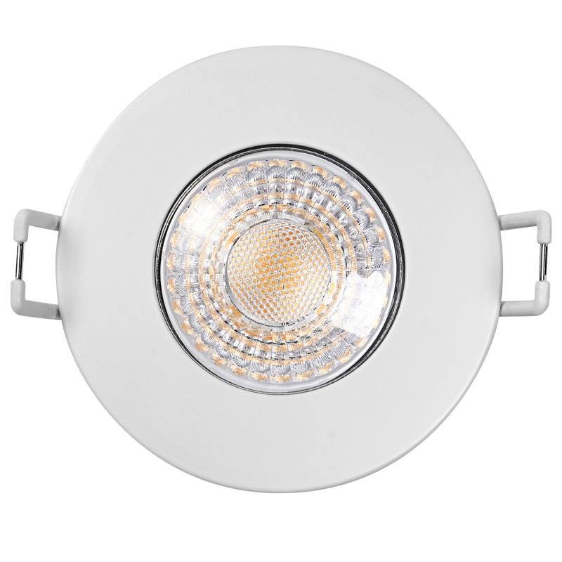 Foco LED empotrado ideal para sustituir focos halógenos. Dispone de un interruptor para seleccionar la temperatura de color entre 2700K, 3000K y 4000K, y tiene protección IP65, lo que lo hace resistente al polvo y al agua, apto para uso en interiores y exteriores.