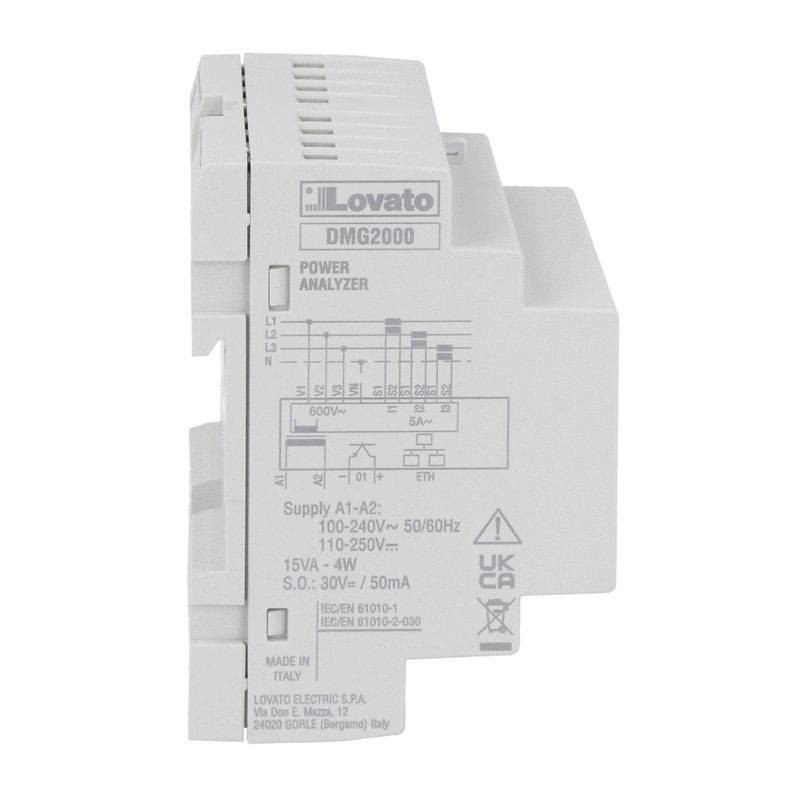 Lovato DMG2000 es el analizador de red modular en carril DIN con pantalla a color y Ethernet integrada: mide energía y parámetros eléctricos con precisión clase 0.5s y análisis armónico hasta el 63º orden, ideal para monitoreo de instalaciones.