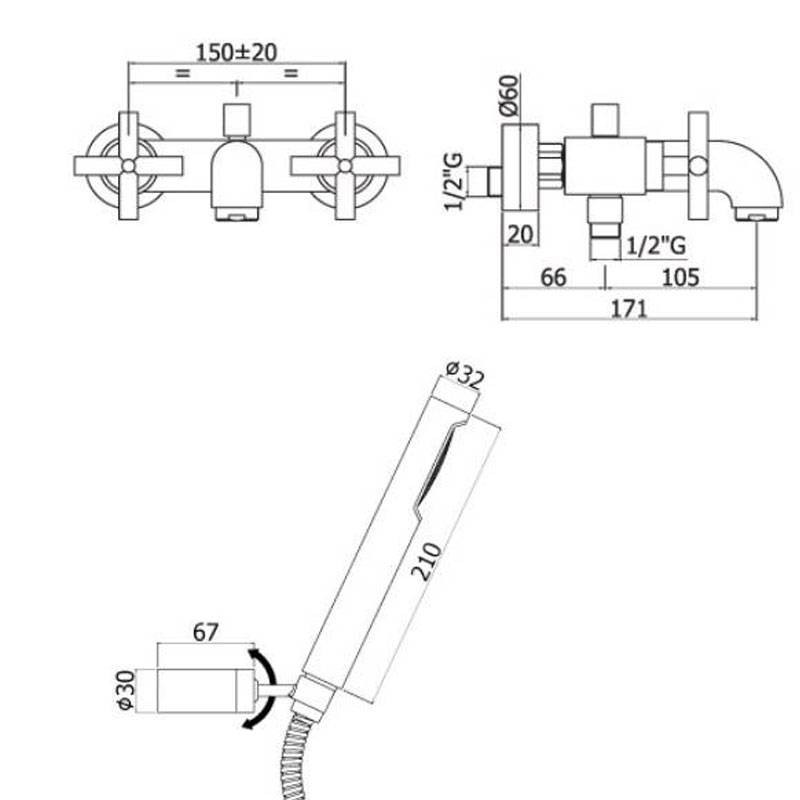 Mezcladora de bañera Paffoni Quattro con soporte de pared articulado cromado con las siguientes características: