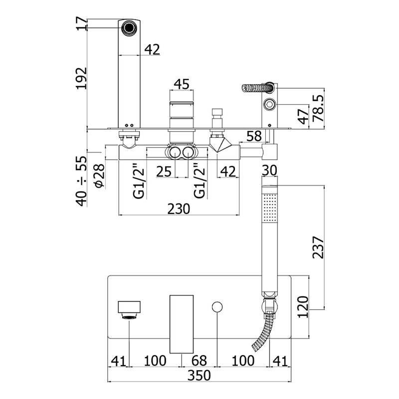 Mezcladora de bañera Paffoni Elle con desviador cromado con las siguientes características: