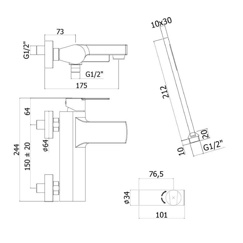 Mezcladora externa de bañera Paffoni Tango con soporte mural cromado con las siguientes características: