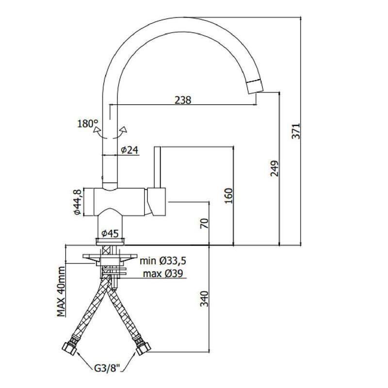 - Longitud del caño: 23,8 cm