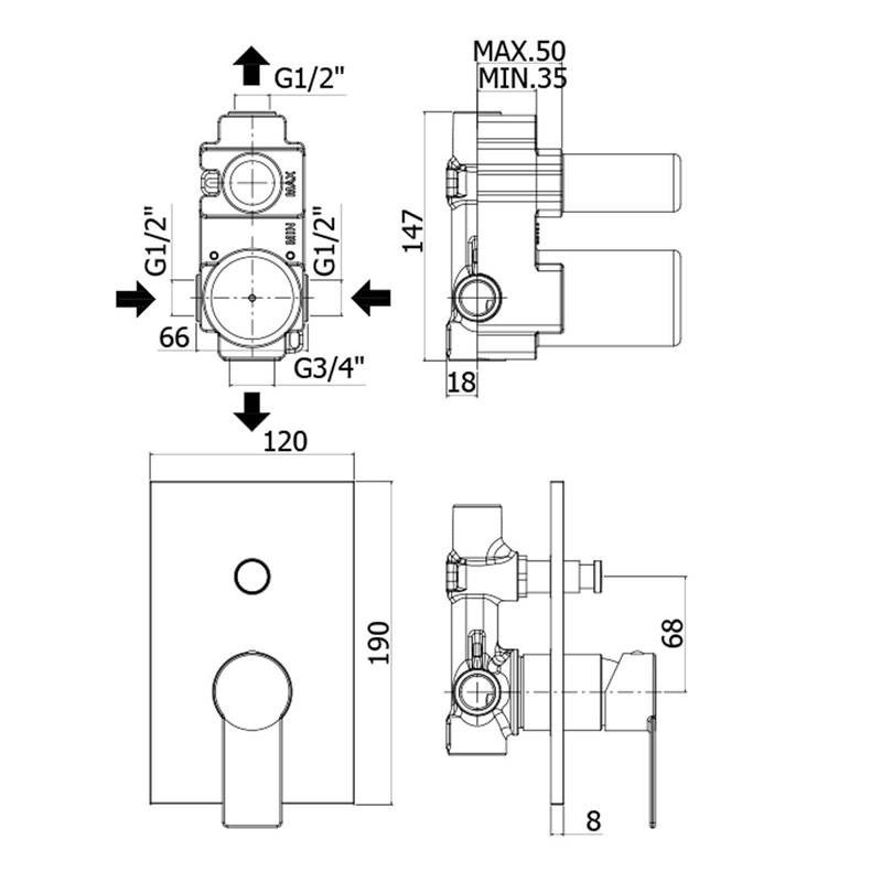 Mezcladora empotrada para ducha Paffoni Tango con desviador cromo con las siguientes características: