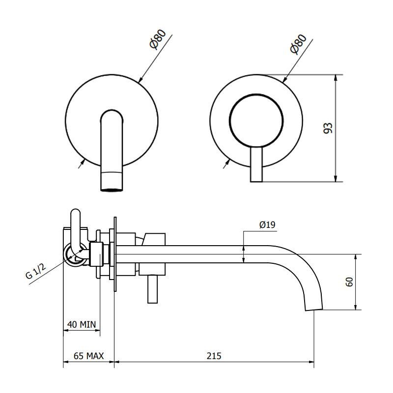 Mezcladora de lavabo de pared Teorema Jabil 25, 2 piezas con desagüe click clack, versión cromada.