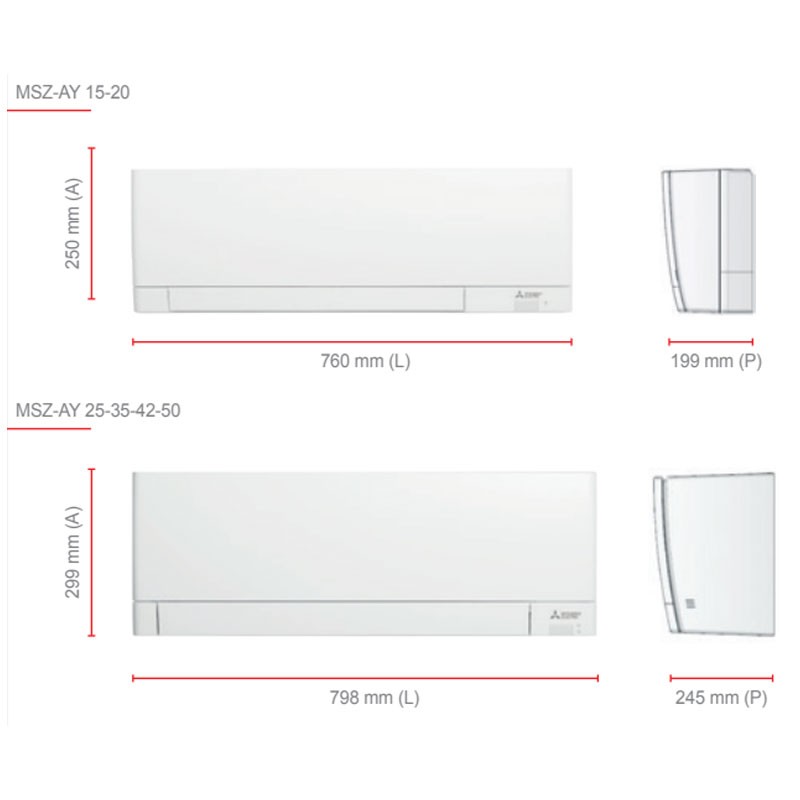 Las unidades MSZ-AY se caracterizan por sus dimensiones ultracompactas, con sólo 2 niveles de tamaño para 6 potencias diferentes.