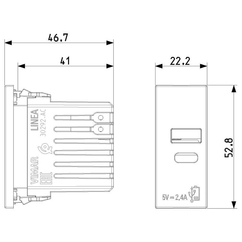 Fuente de alimentación USB Vimar Linea A+C 5V 15W 3A Cáñamo 30292.AC15C