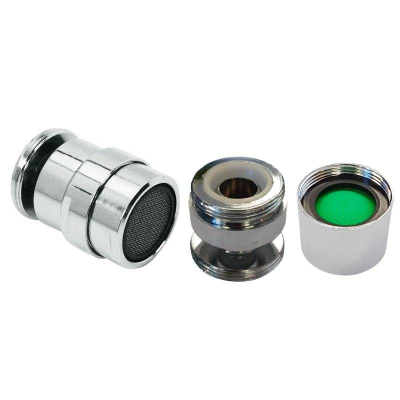 Aireador de grifo, conexión Macho 24x1, con articulación de latón cromado, completo con junta negra.