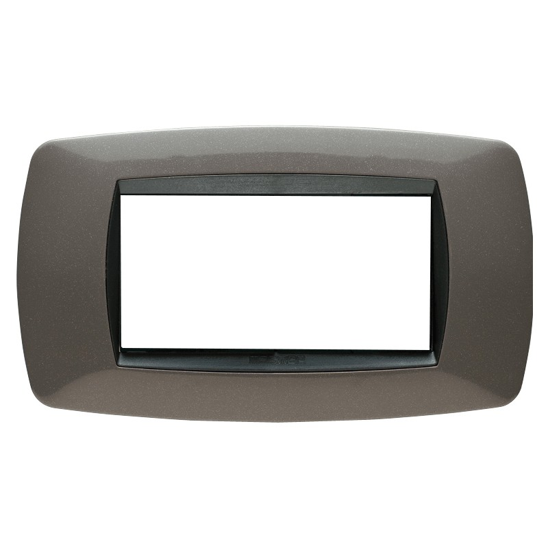 Placa Master Modo 4 módulos (frutas, plazas) gris antracita. La placa se monta en los soportes 38004, 38004-F, o mediante el adaptador 39034 la placa es compatible con los soportes LN4704 y L4704 de las series Bticino Living y LivingLight.
