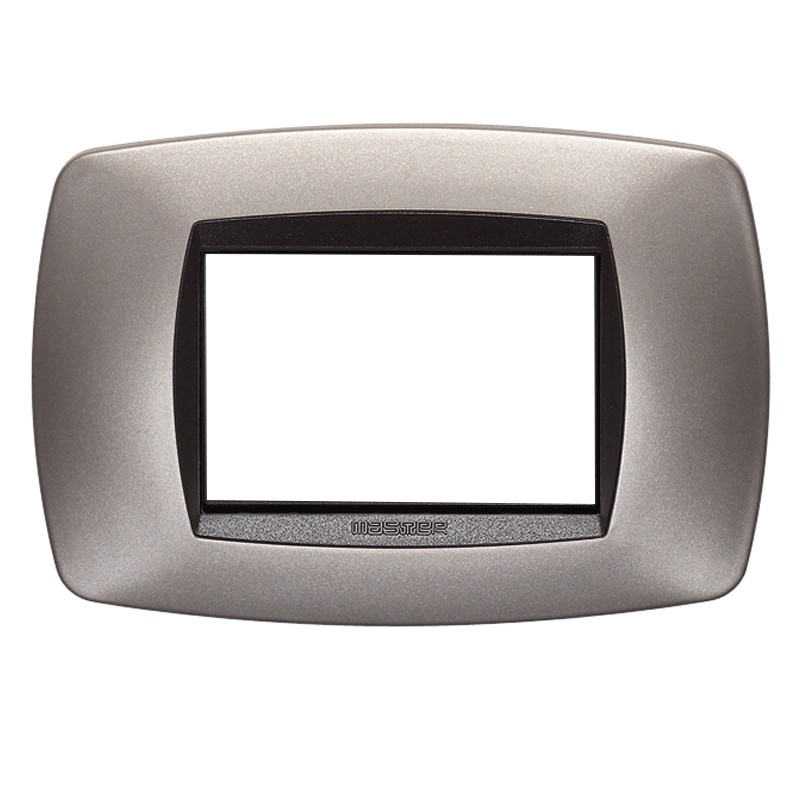 Placa Master Modo 3 módulos (frutas, lugares) de tecnopolímero, color bronce opaco. La placa se monta en los soportes 38003, 38003-F, o mediante el adaptador 39033 la placa es compatible con los soportes LN4703 y L4703 de las series Bticino Living y LivingLight.