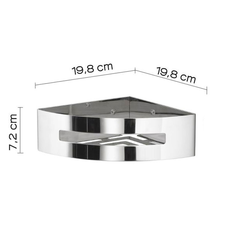 Jabonera esquinera de ducha Gedy Poseidon de acero inoxidable AISI 304 y ABS, modelo cromado pulido, dimensiones: 19,8 cm x 19,8 cm x 7,2 cm.