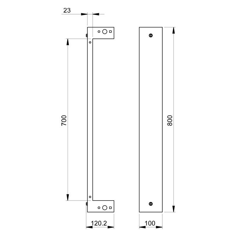- Dimensiones: altura 100 mm - anchura 800 mm - profundidad 400 mm