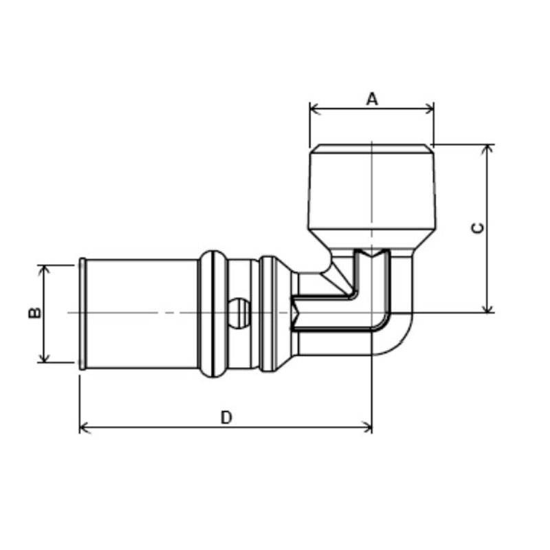 Racor de prensa acodado para tubo multicapa. Los artículos están equipados con una junta tórica doble, además de un anillo de PE para eliminar las corrientes parásitas. Los racores se utilizan en sistemas de suministro de gas.