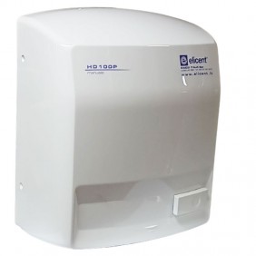 Secamanos eléctrico superrápido y de bajo consumo. Introducción de las manos desde arriba, con bandeja de recogida de agua en la base del aparato. Modelo con resistencia eléctrica regulable on/off.