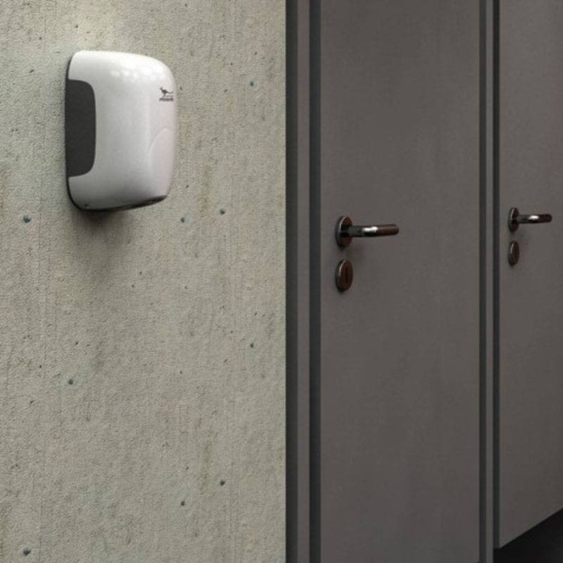 Con una profundidad inferior a 10 cm, es uno de los secadores de manos más pequeños del mercado. El secado rápido combinado con una potencia de sólo 900 W se traduce en un considerable ahorro de energía.