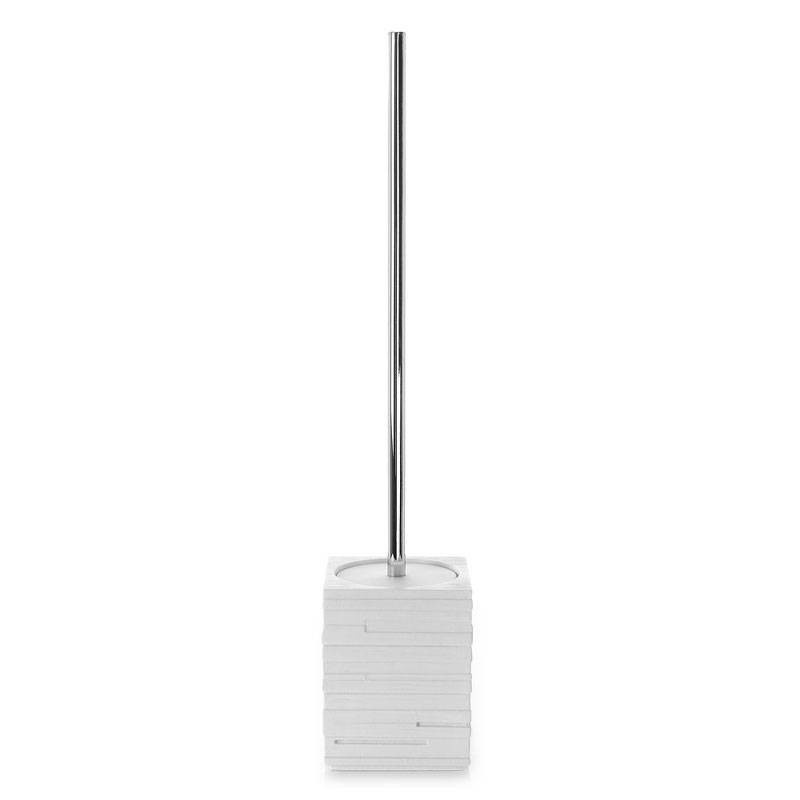 - 1 Escobillero independiente blanco, de resina, con escobilla y cerdas, efecto estriado, dimensiones 9,5x9,5x46cm.